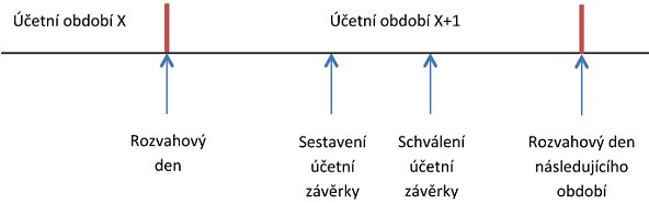 Objevíme-li chybu v účetnictví, je naším prvním úkolem zjistit, kde přesně se v časové ose nacházíme. Pro lepší orientaci uvádíme grafické znázornění.